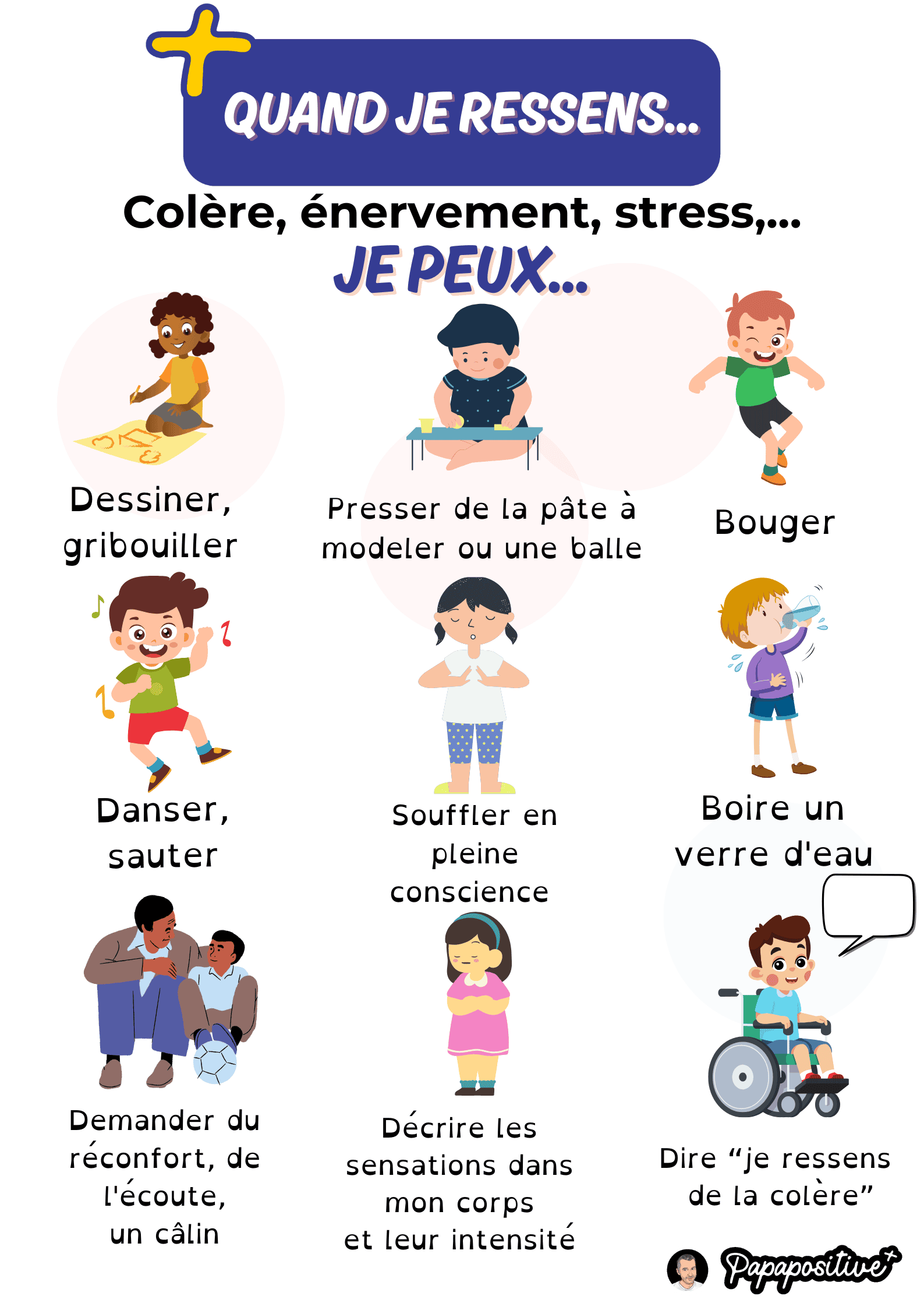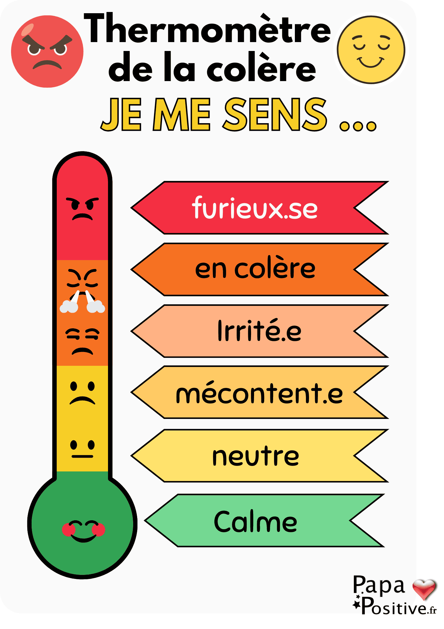 Cet outil propose au recto un thermomètre de la colère (verbalisation+intensité) et au verso des propositions de stratégies pour réguler cette colère.